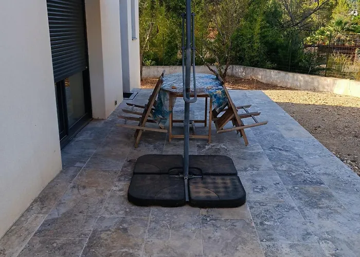 Die Villa ist mit einem Wasserkocher, einem Kühlschrank und einem Herd für die Selbstversorgung in einen Essbereich im Freien ausgestattet. Die Entfernung zum Flughafen Nizza Côte d'Azur beträgt etwa 70 km.
